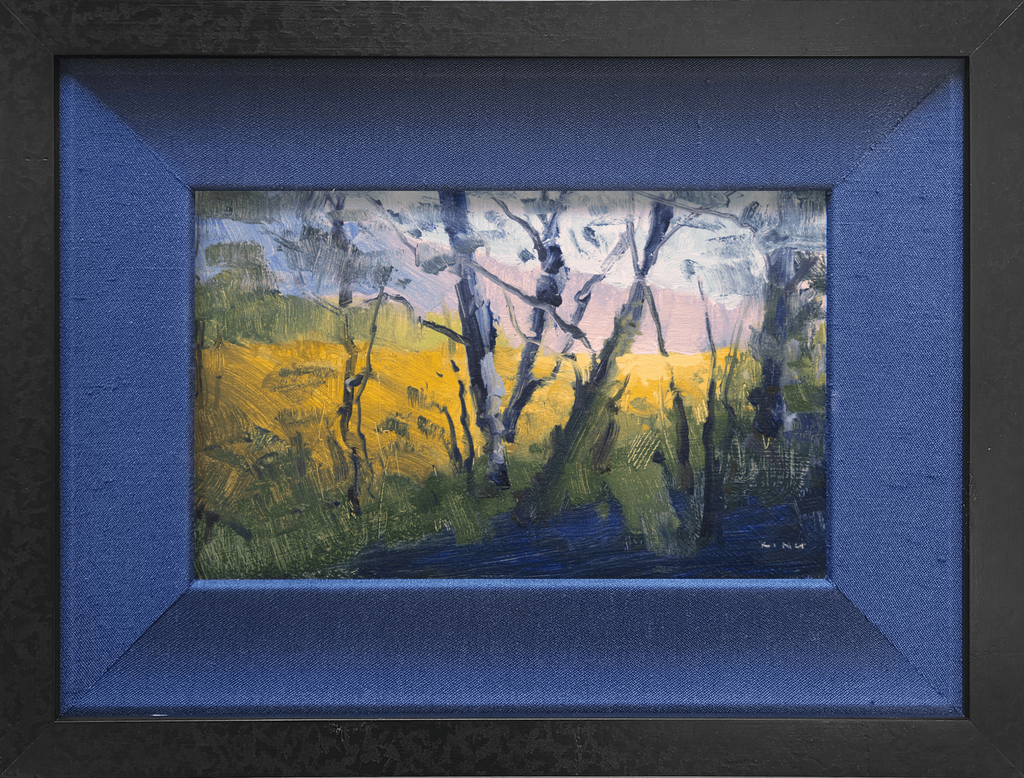 11" x 14.75" Black Wood Frame with Blue Linen Mat Included